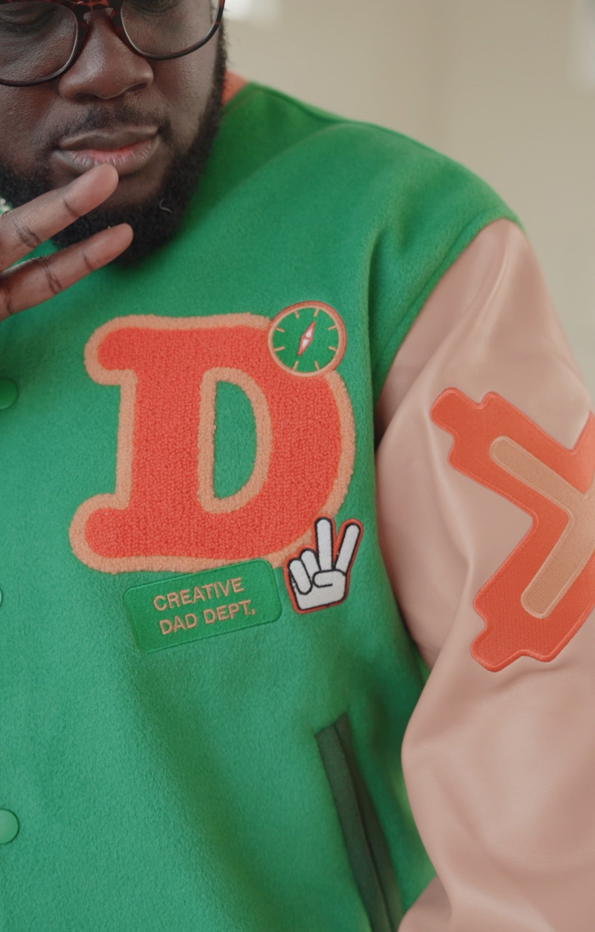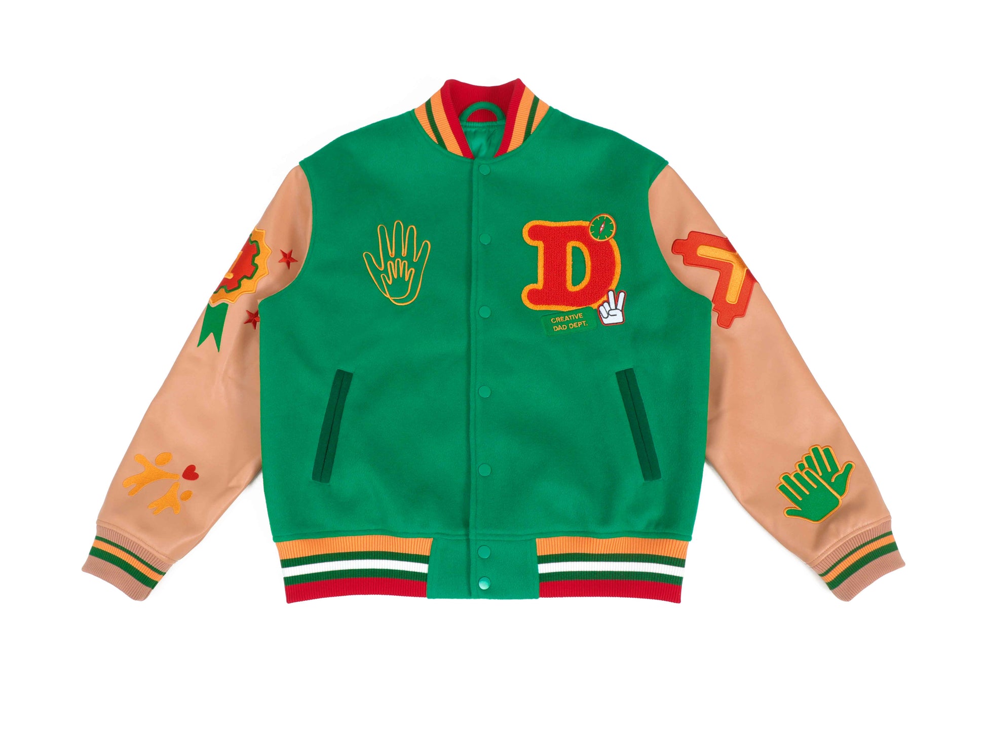 - Chenille patches: “DAD,” Letter D, High Five, #1 Ribbon, Wrench + Hammer