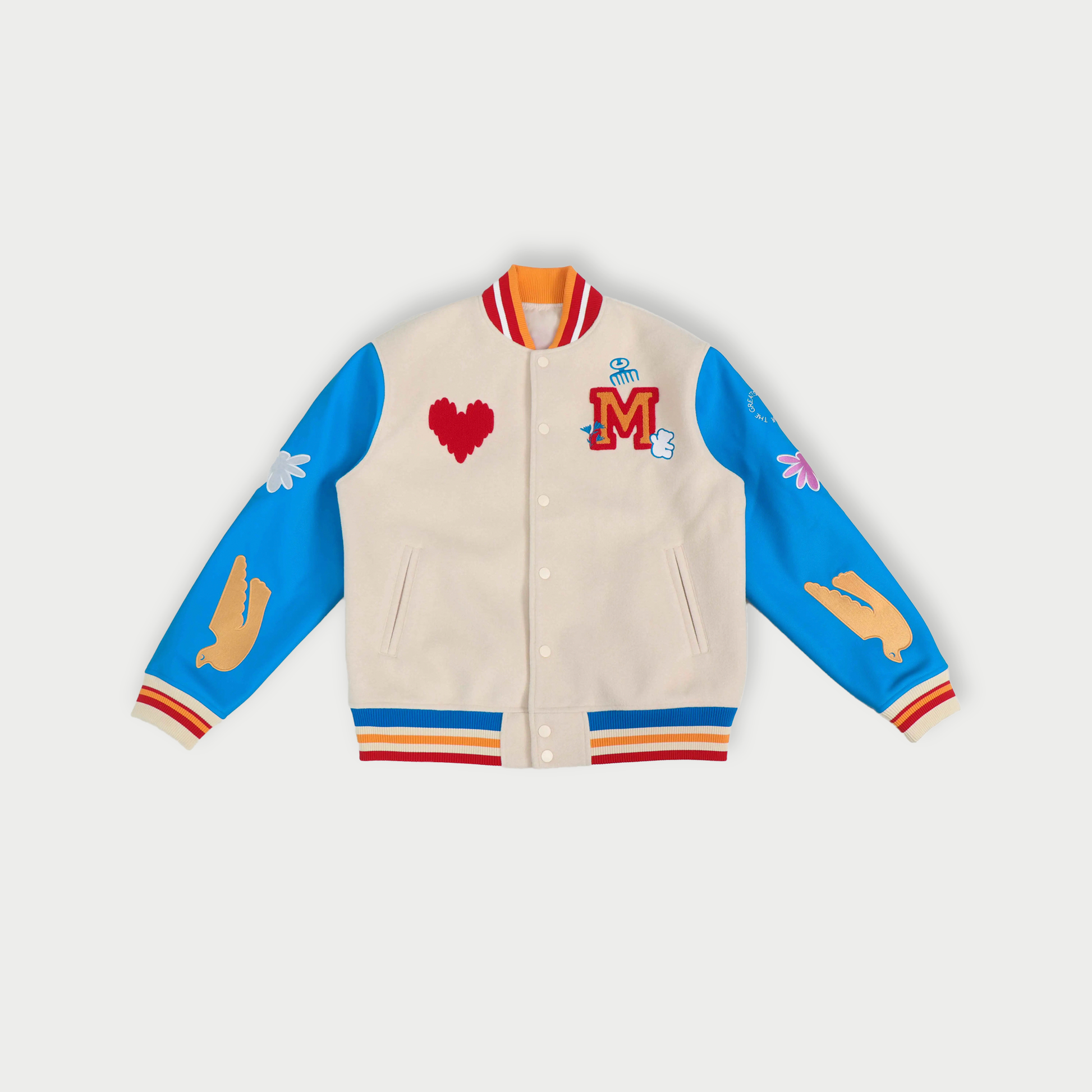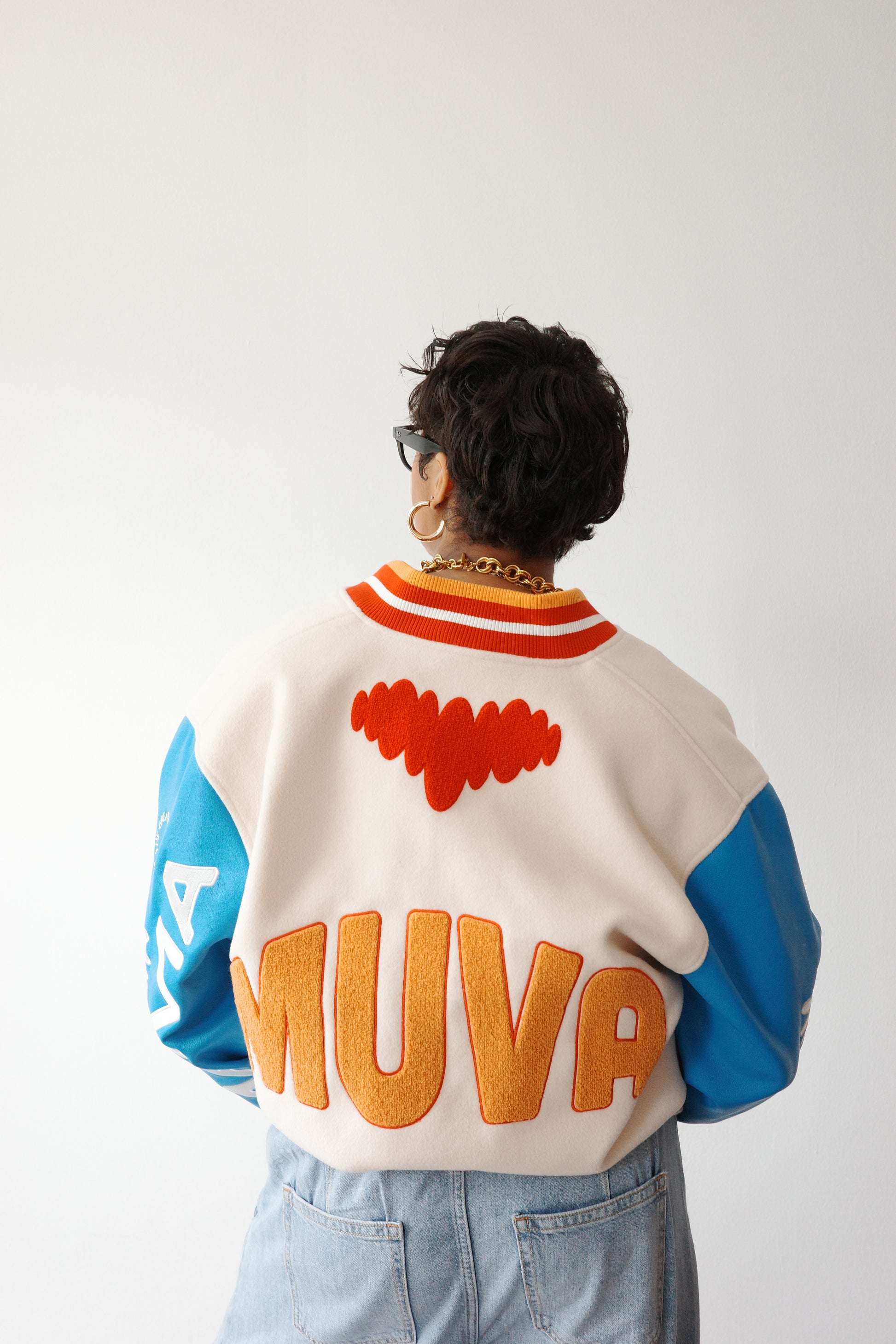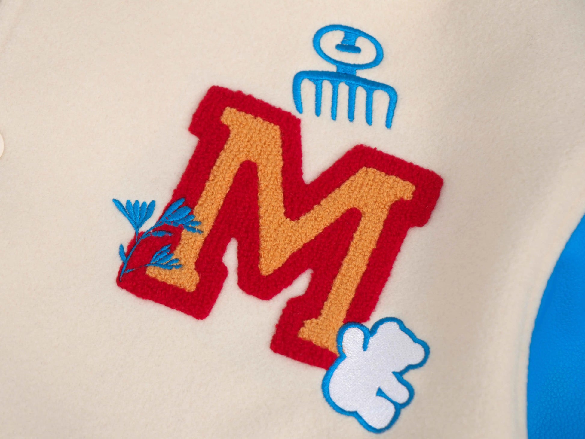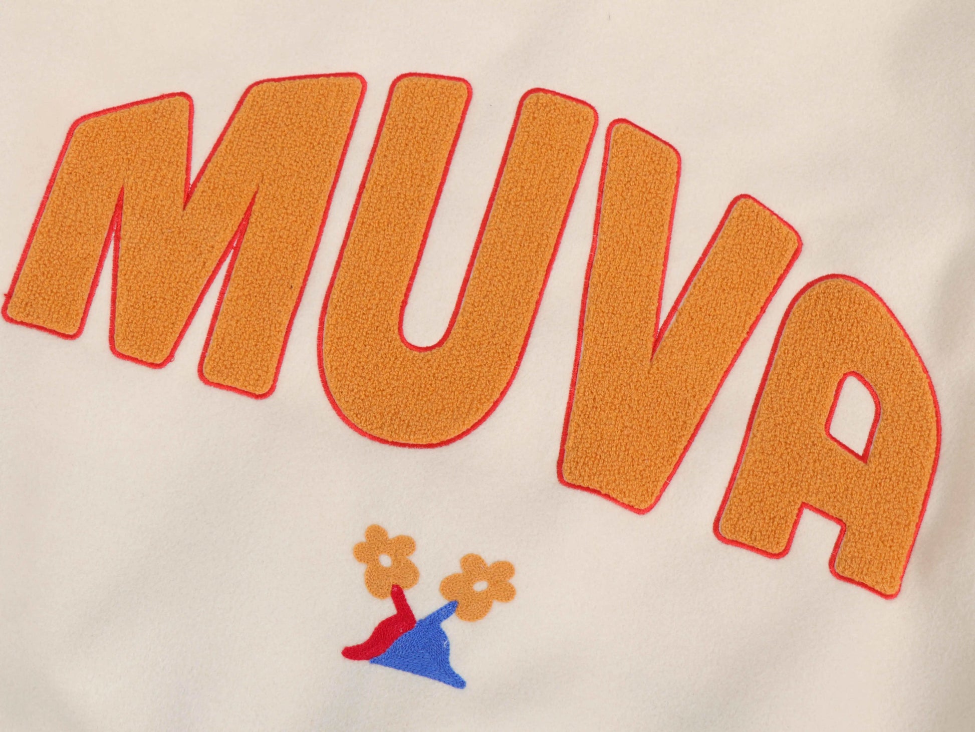 - Chenille patches: “MUVA,” Teddy Bear, Letter M, and Heart symbols