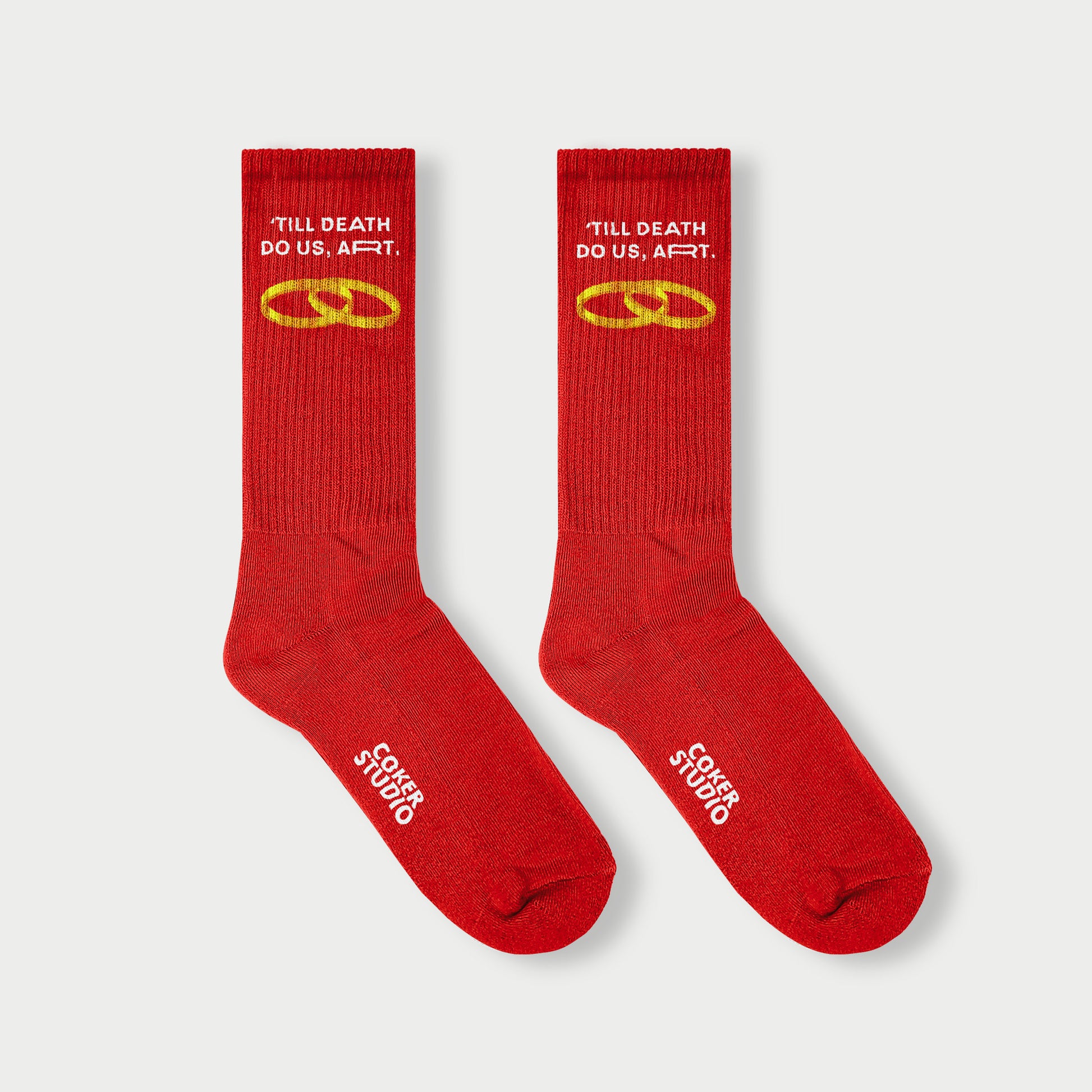 - Front Design: 'TILL DEATH DO US, ART. printed in white, with a yellow infinity symbol below.