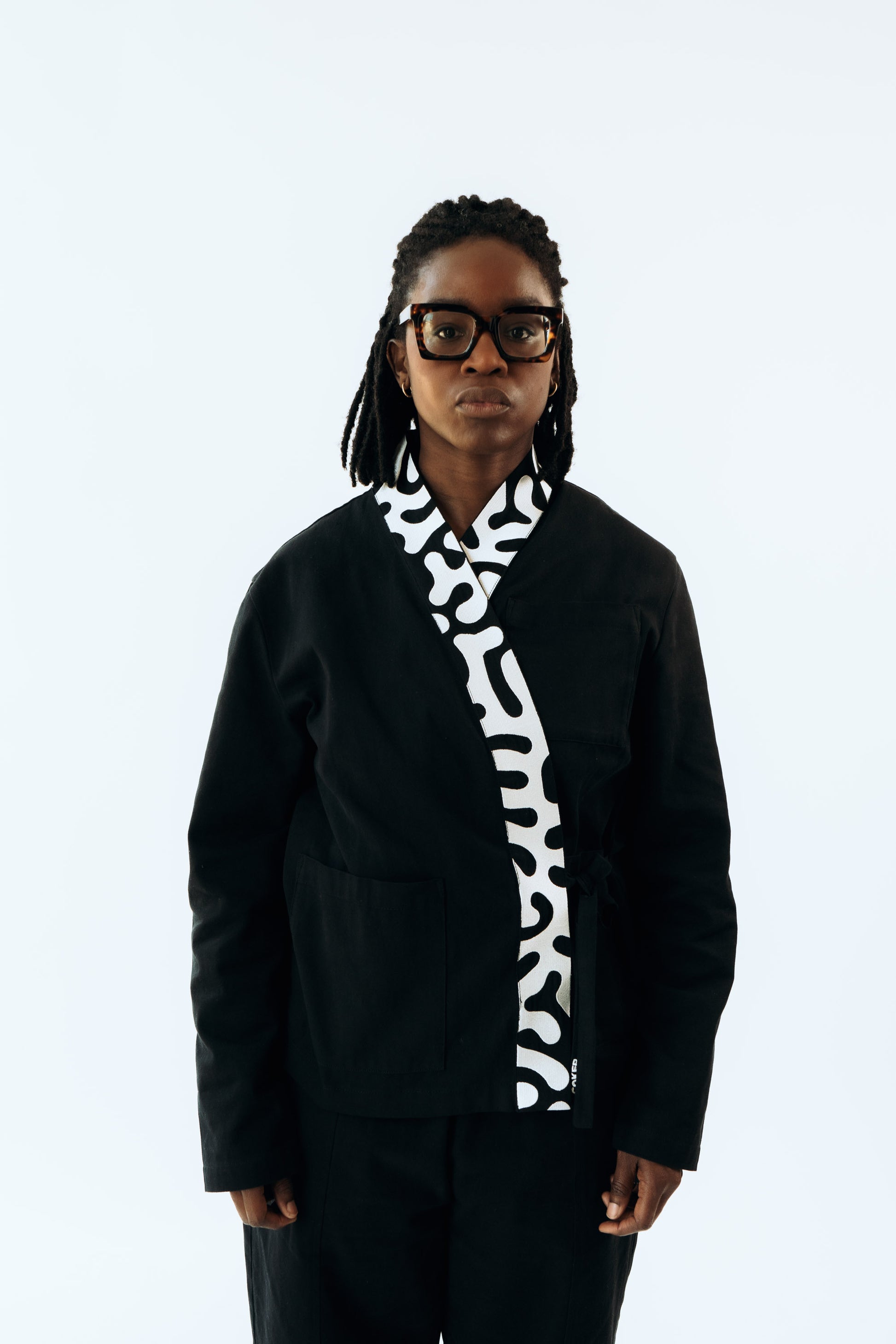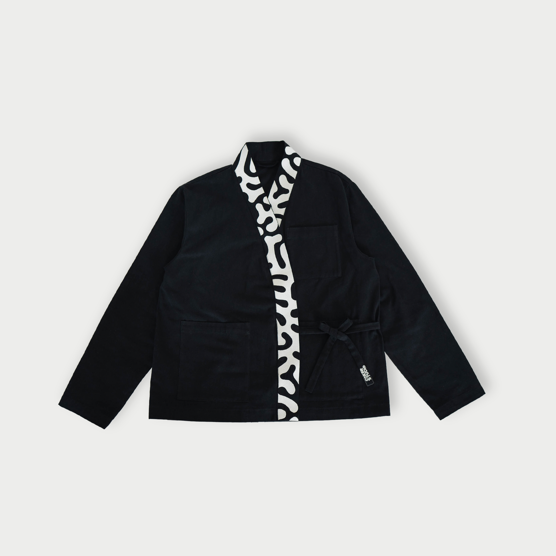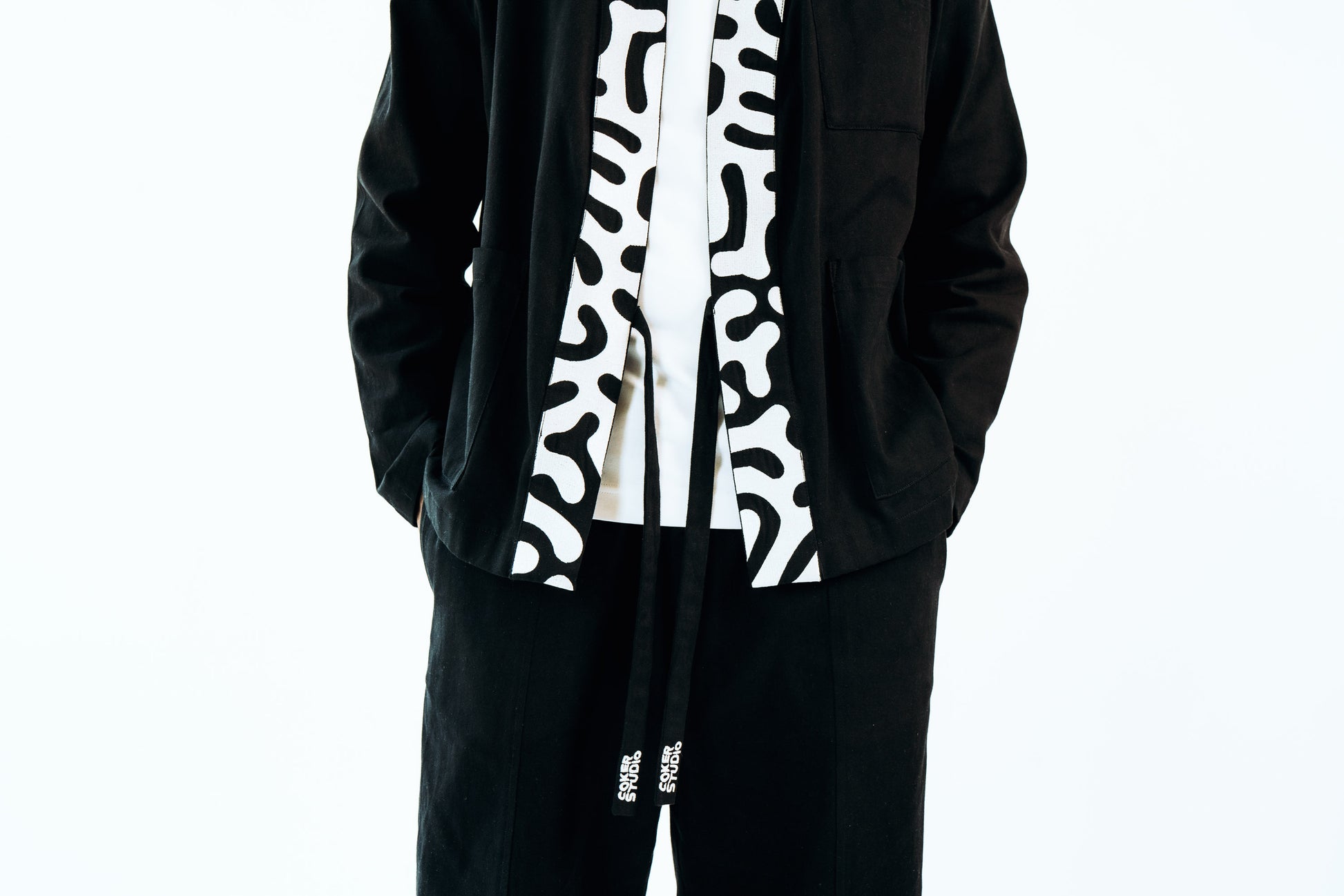 Made from soft cotton with a relaxed cropped fit, the Asobi Jacket is built for everyday wear—whether you're out, at home, or in the studio. The embroidered collar features our signature black-and-white print, and it’s finished with two deep front pockets, a chest pocket, and a hidden interior one for whatever you need to tuck away.