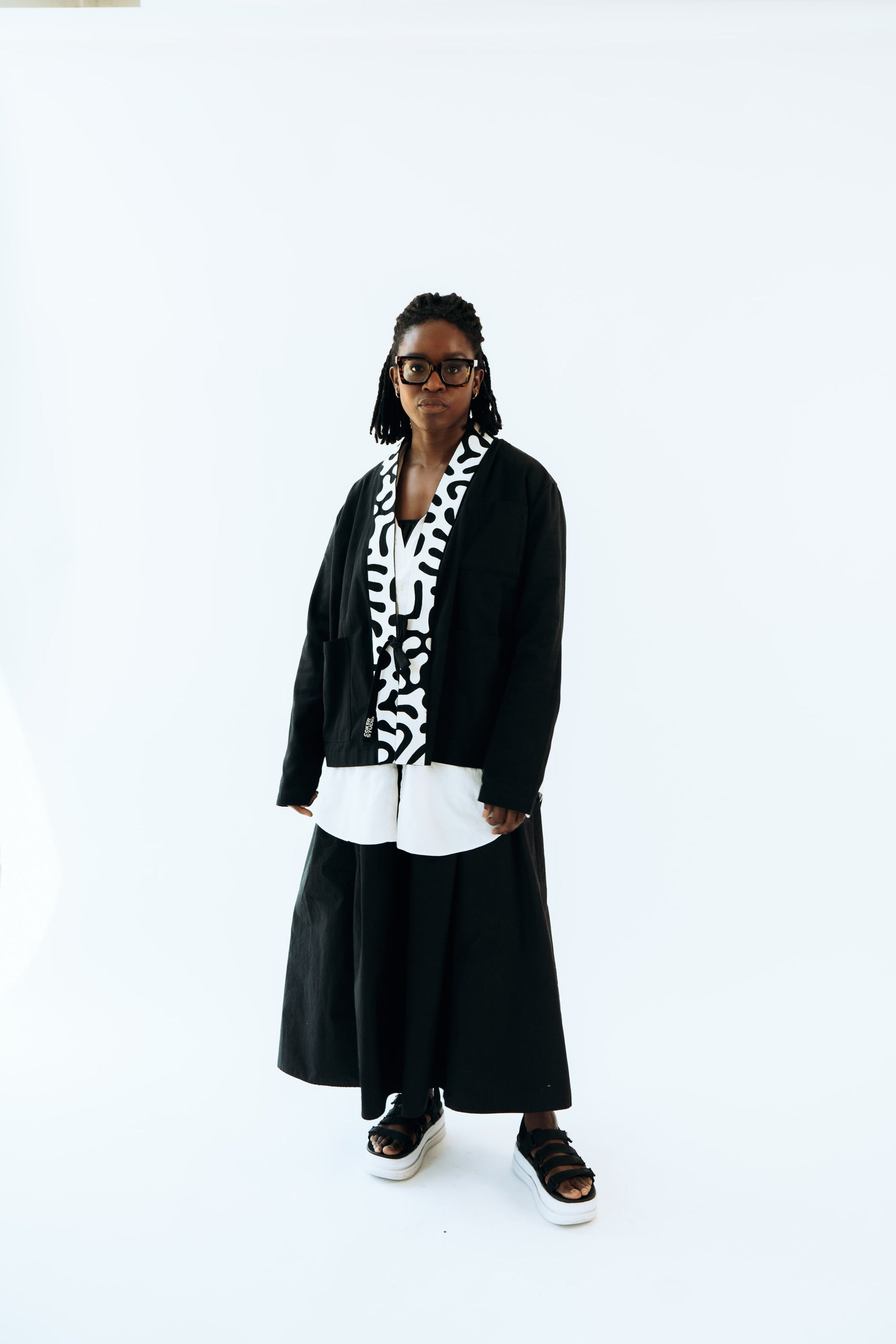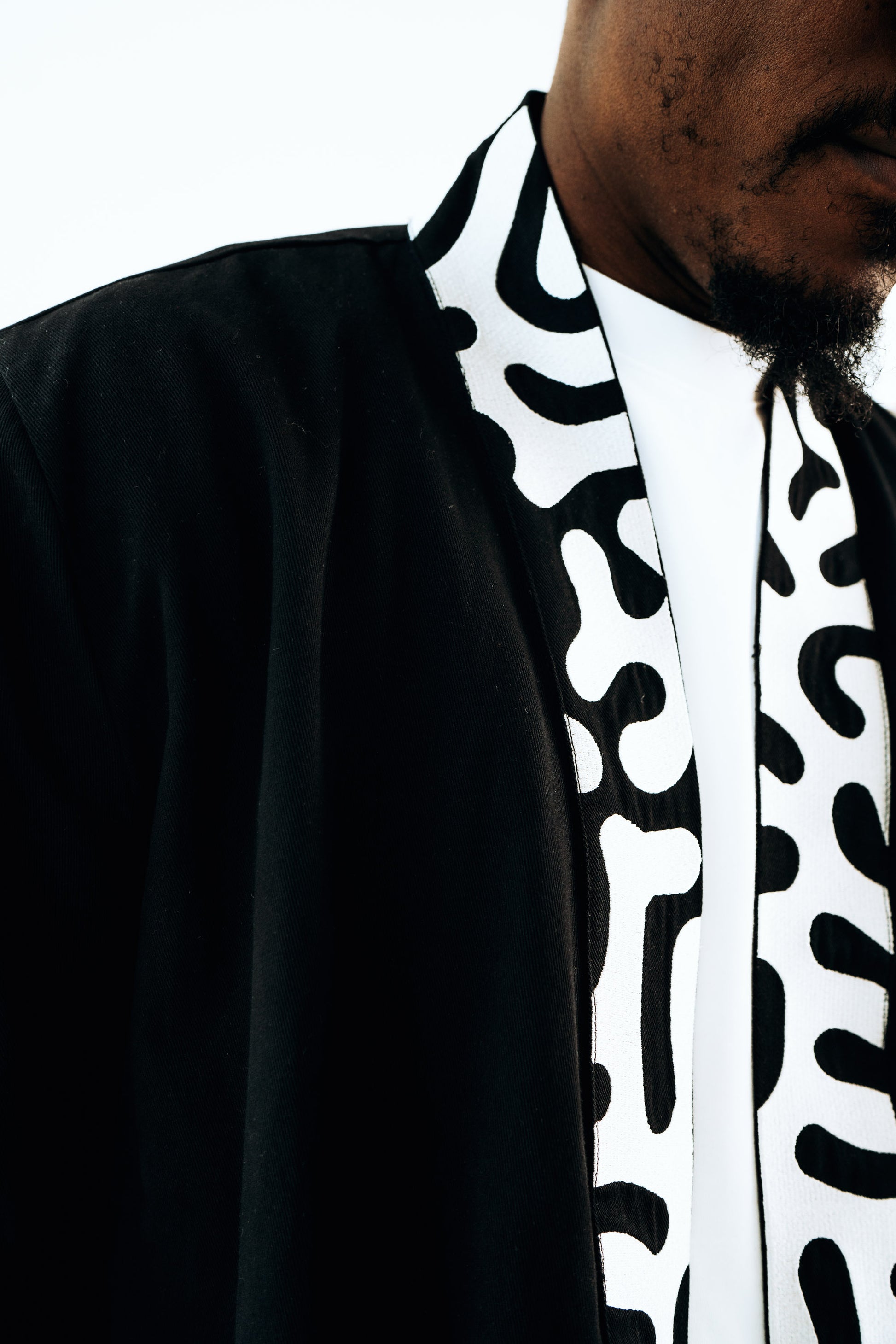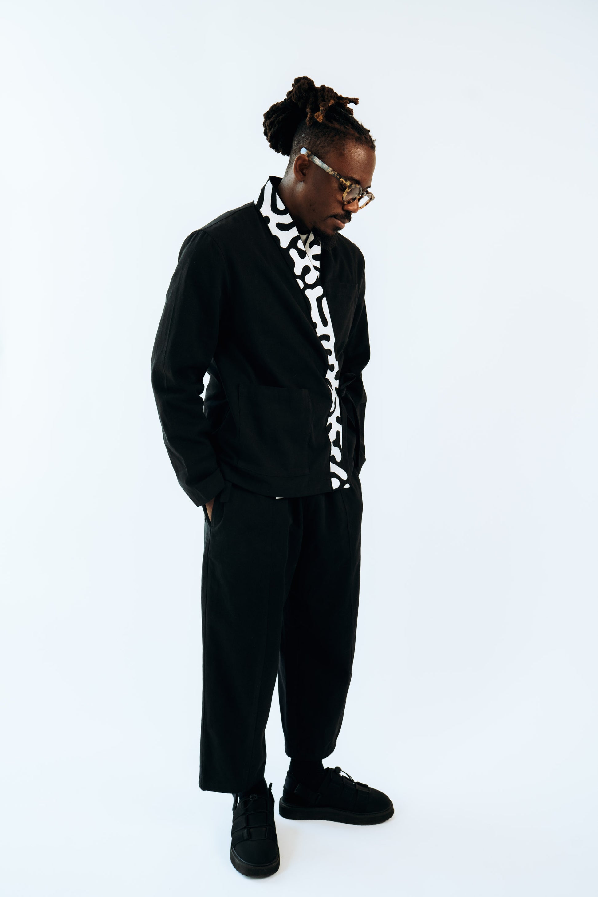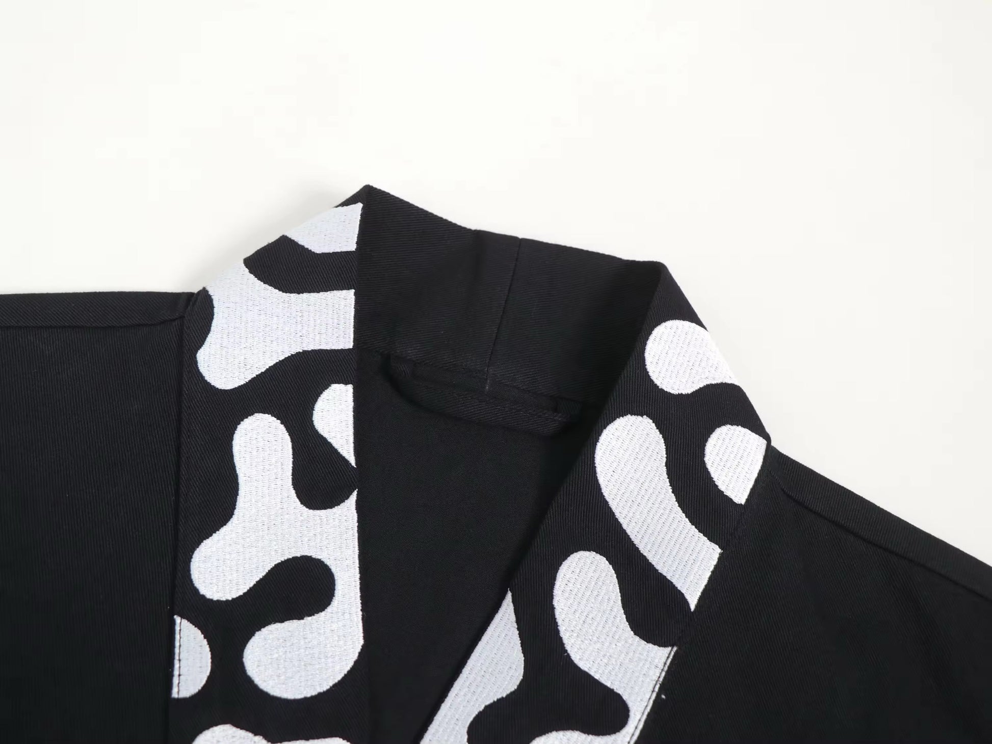 Made from soft cotton with a relaxed cropped fit, the Asobi Jacket is built for everyday wear—whether you're out, at home, or in the studio. The embroidered collar features our signature black-and-white print, and it’s finished with two deep front pockets, a chest pocket, and a hidden interior one for whatever you need to tuck away.