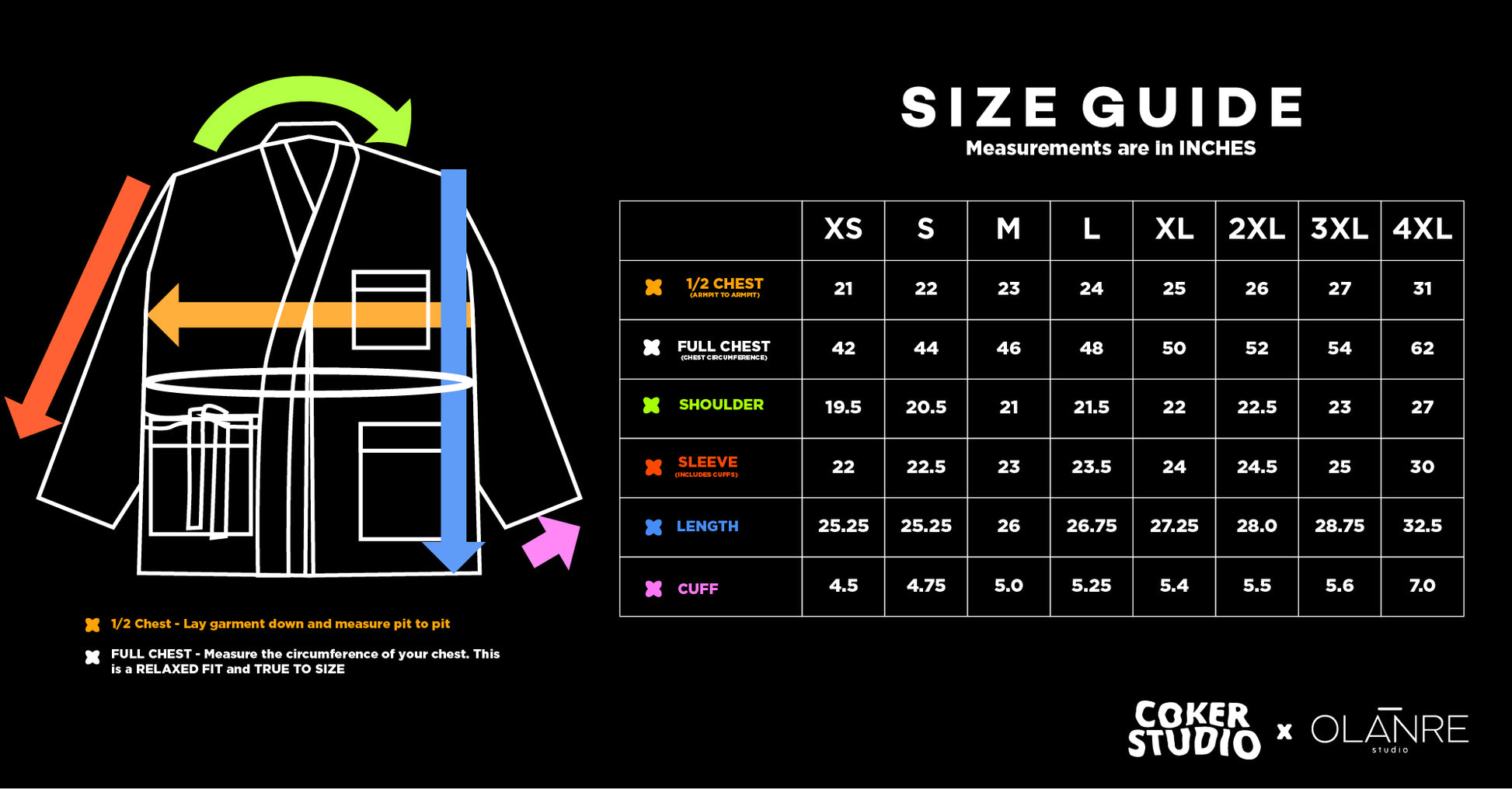 Check the size chart above for exact chest, shoulder, and sleeve measurements