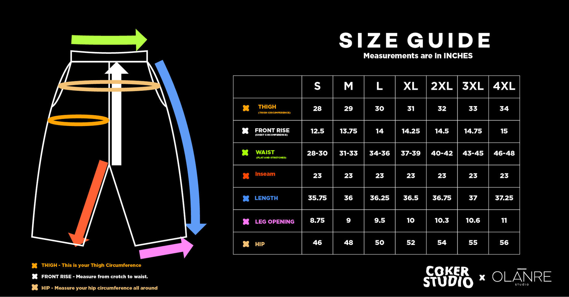 Need help deciding? Check the size chart for waist, inseam, thigh, and hip measurements.
